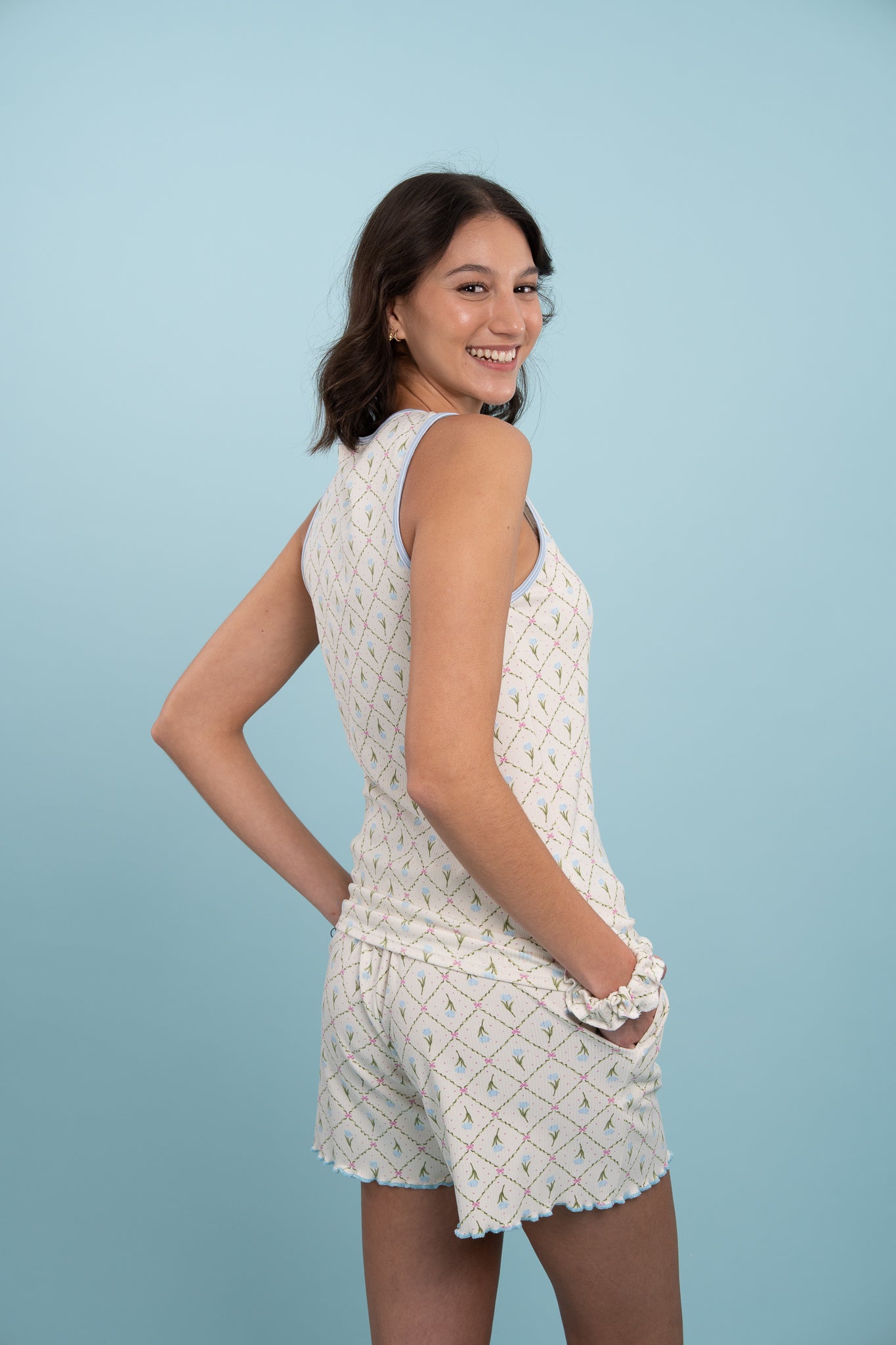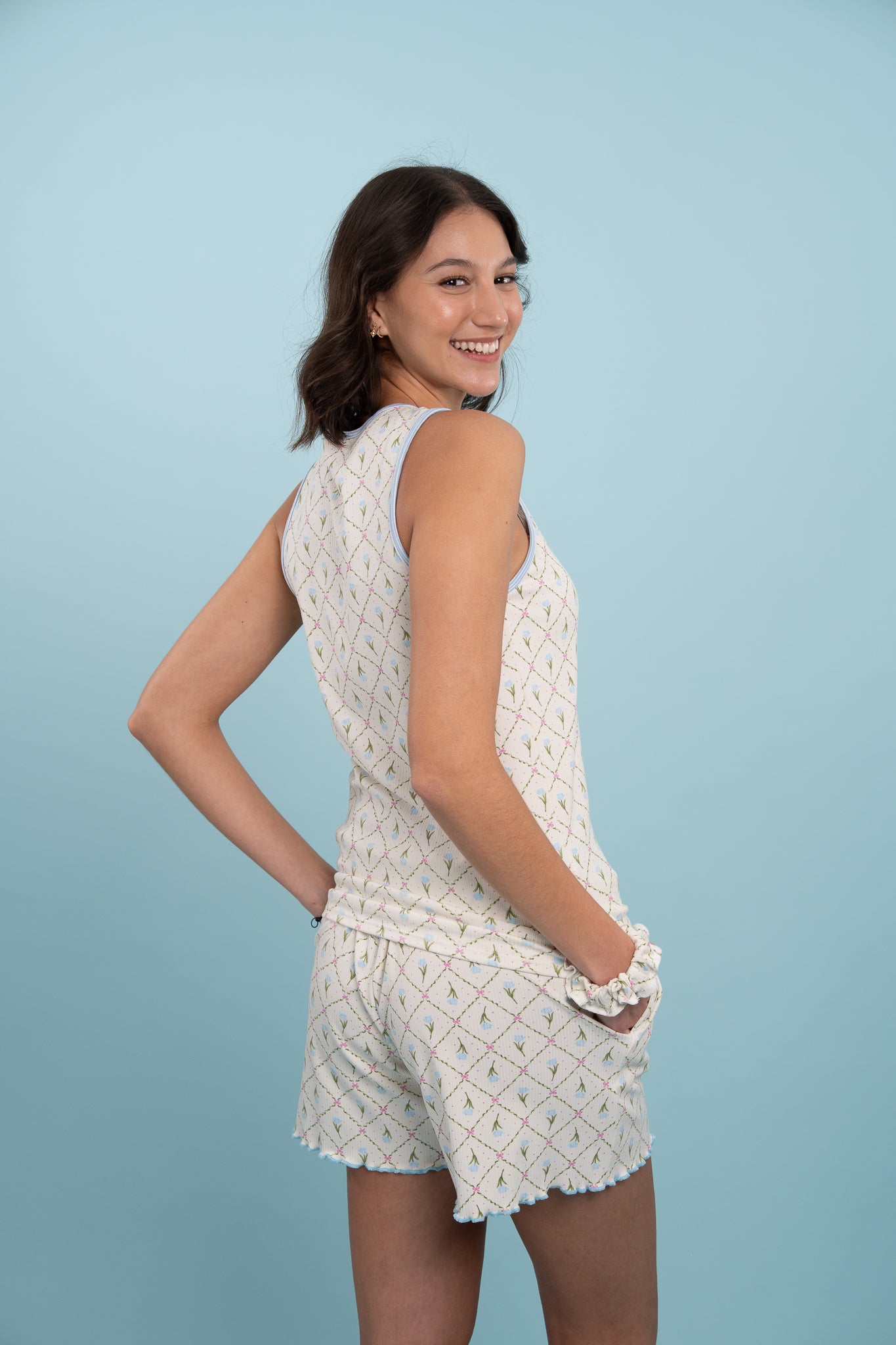 Pijama Clasica Floral Blow 2 piezas , blusa manga corta, y Short con bolsas