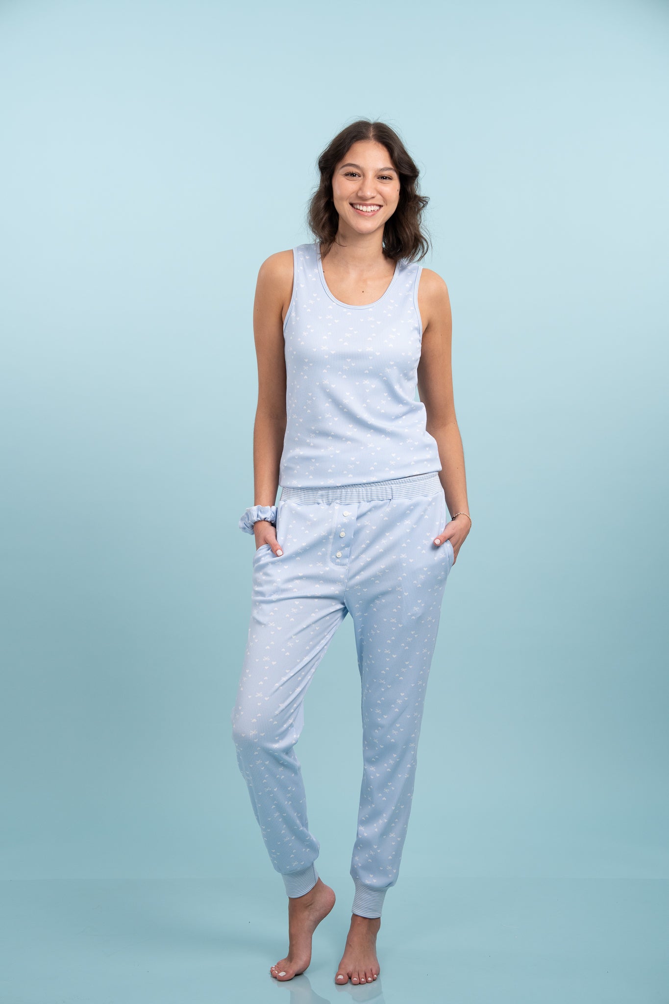 Pijama Clasica Heart Blue 2 piezas , blusa manga corta, y pantalon con bolsas