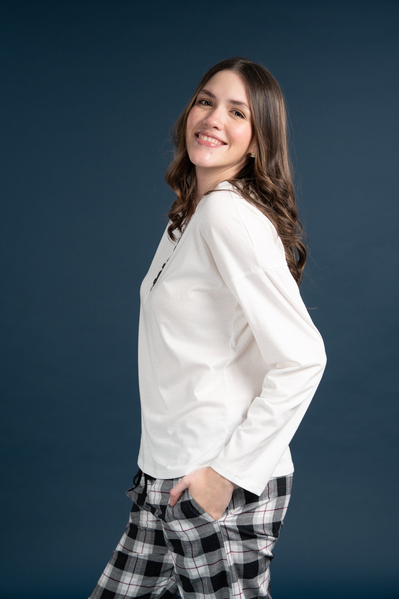 Pijama Clasica Liverpool 2 piezas , blusa manga larga  , y pantalon con bolsas
