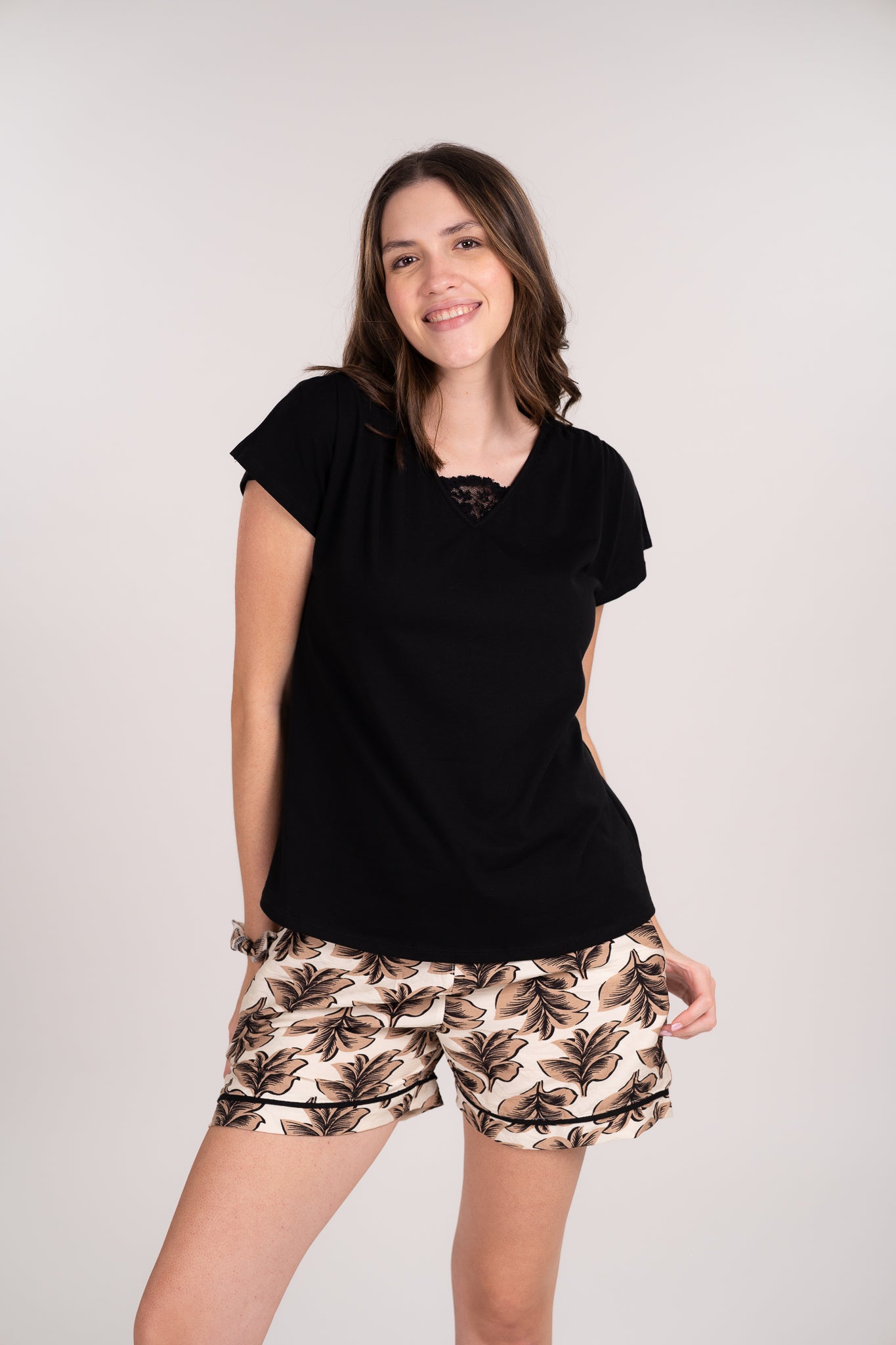 Pijama Clasica Otoño 2 piezas , blusa manga corta y short con bolsas