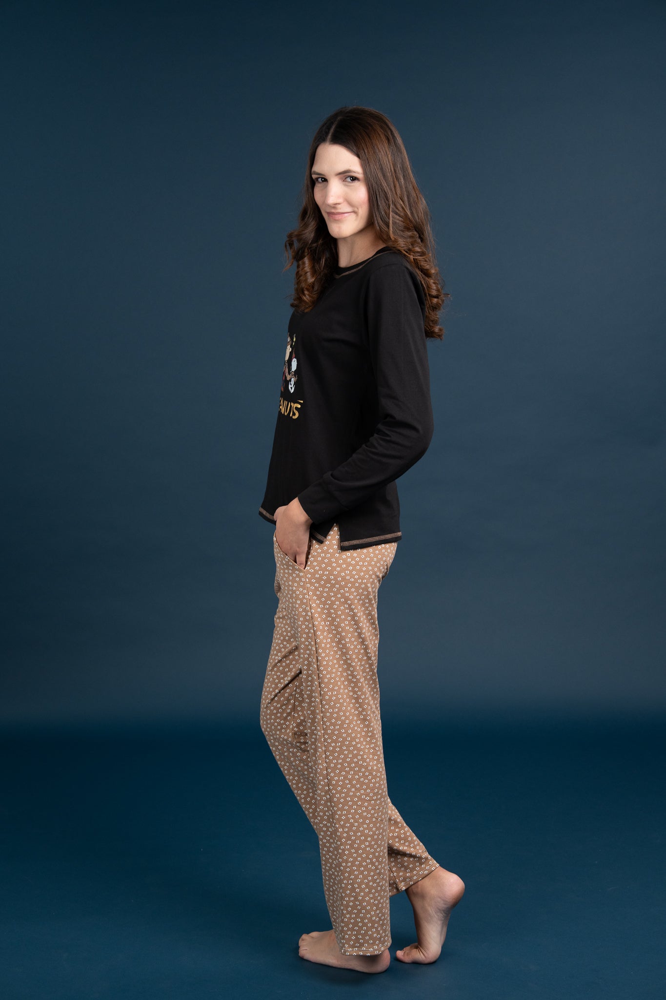 Pijama Clasica Peanuts Snoopy 2 piezas , blusa manga larga , y pantalon con bolsas