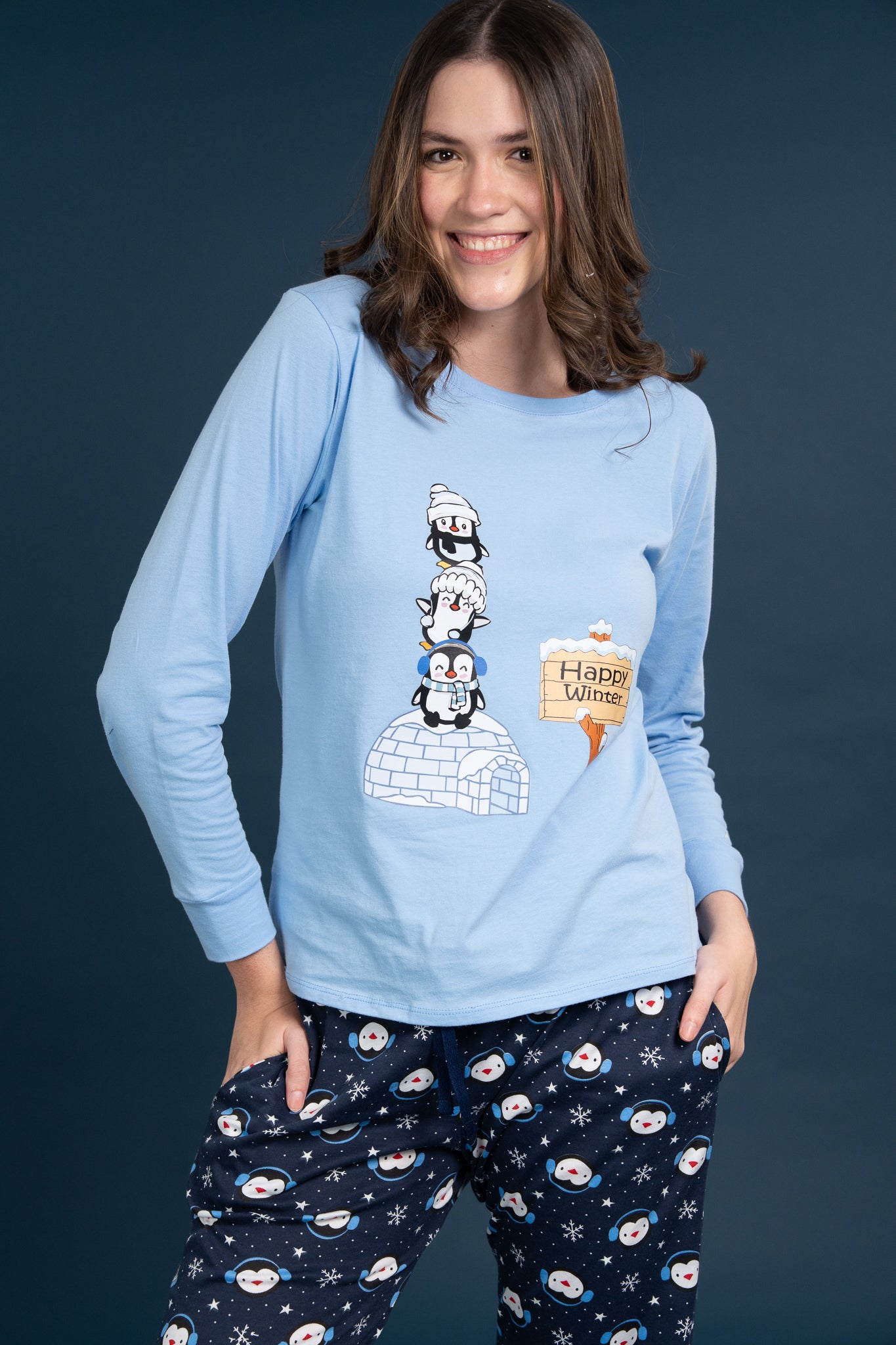 Pijama Clasica Pinguin 2 piezas , blusa manga larga , y pantalon con bolsas